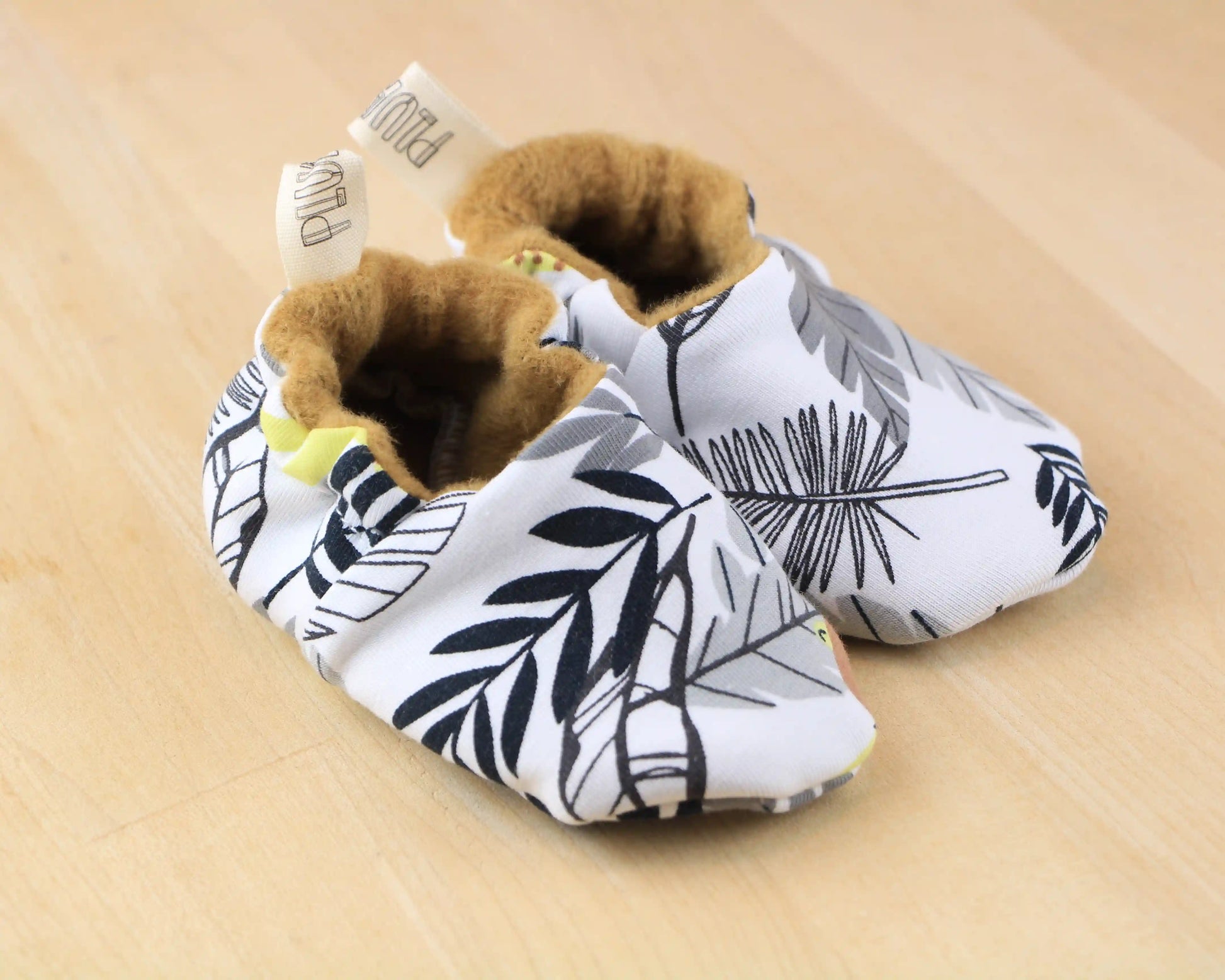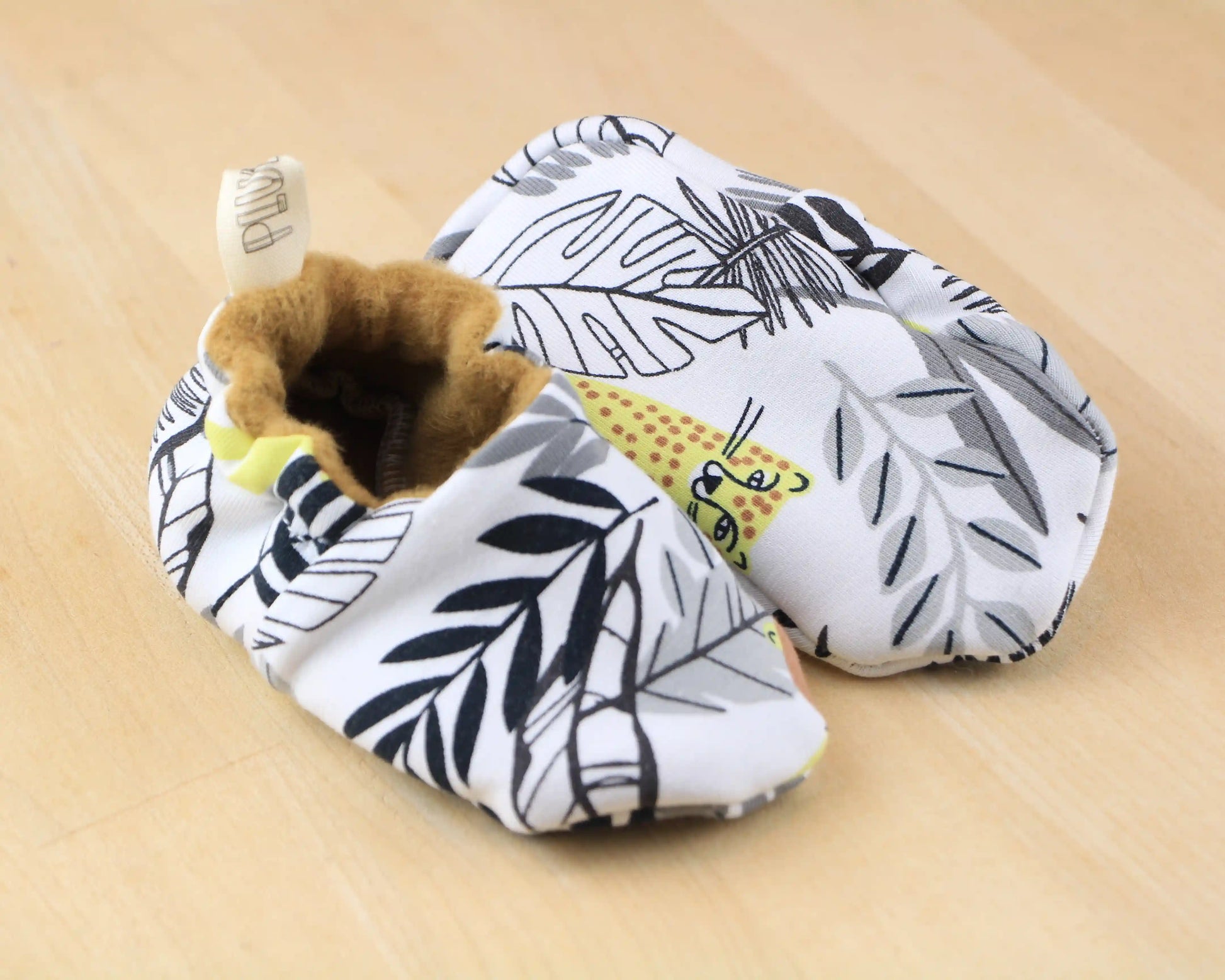 Babbucce in jersey con interno felpato. Entrambi i tessuti elasticizzati e la presenza dell’elastico sul retro rendono facile la calzatura e l’adattabilità al piede. Realizzate anche con antisdrucciolo a partire dalla taglia 2.