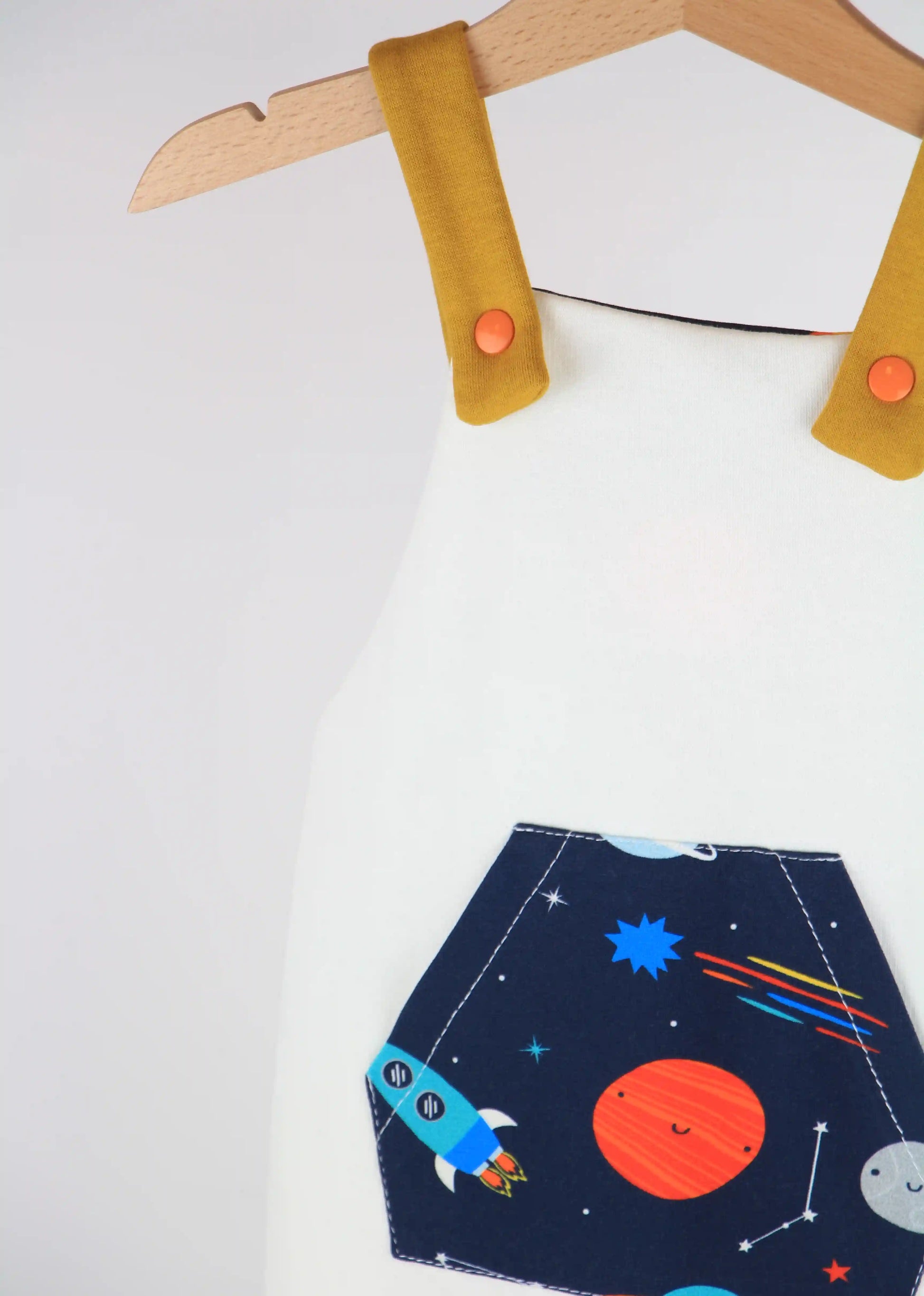 Salopette lunga in felpato di cotone morbido, adatta per qualsiasi tipo di pannolini, compresi i pannolini lavabili. Tasca anteriore ed elastico posteriore. Le bretelle si fissano sulla parte anteriore con bottoni a pressione, con la possibilità di essere incrociate sul retro per una maggiore aderenza.